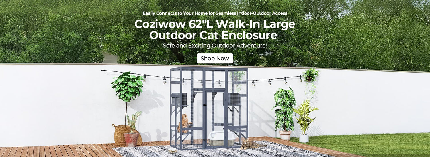 Coziwow offers a variety of pet supplies, including cat trees, cat enclosures, dog ramps, rabbit cages, bird feeders, and so on. Our products are designed with comfort and fashion in mind, featuring uniform color tones that harmonize with your home decor.