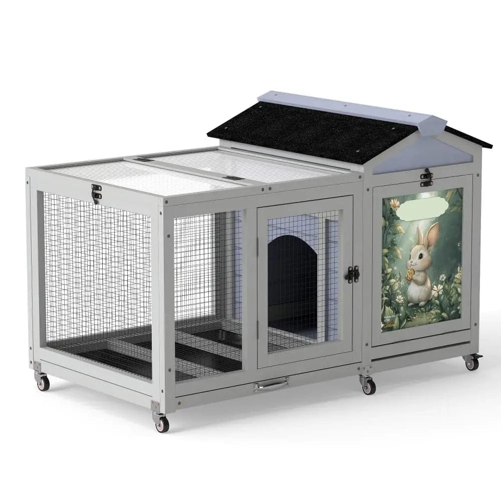 A removable PVC tray (21.3"L x 19.7"W) collects waste for hassle-free cleaning—simply pull out and wipe clean. Six universal wheels at the bottom let you easily move the hutch around your balcony, backyard, or garden without heavy lifting.